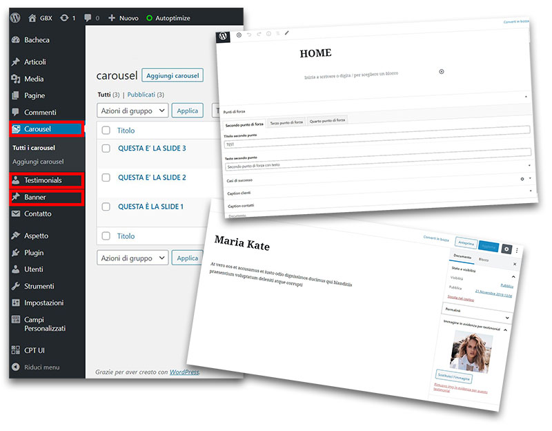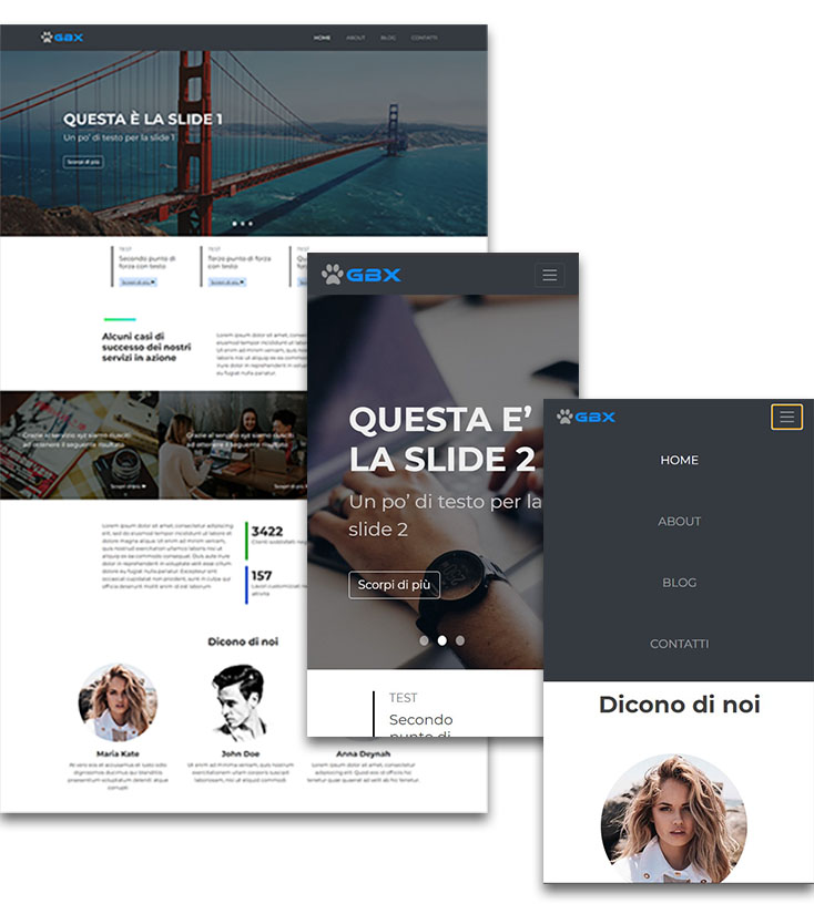 GBX è un tema custom di WordPress, un vero e proprio sito demo creato interamente “a mano” partendo da una bozza grafica di riferimento. Il tutto senza l’utilizzo di Page Builder o temi già pronti.