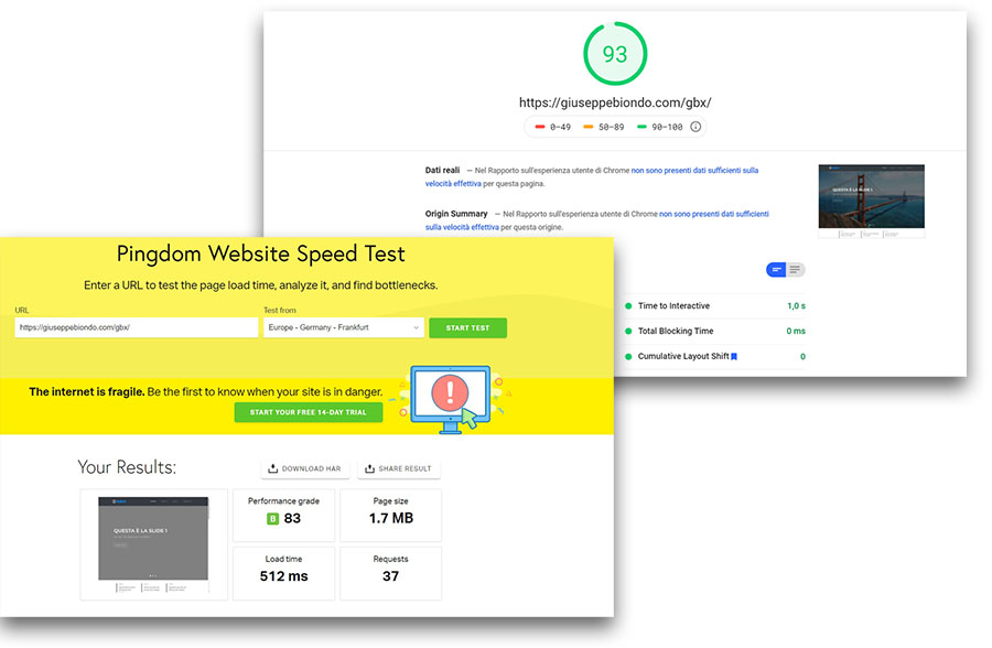 Il risultato è un sito ad alte prestazioni con un peso estremamente ridotto e velocità di caricamento pari a 1 secondo, ottenendo un ranking di ottimizzazione Google al massimo dei voti